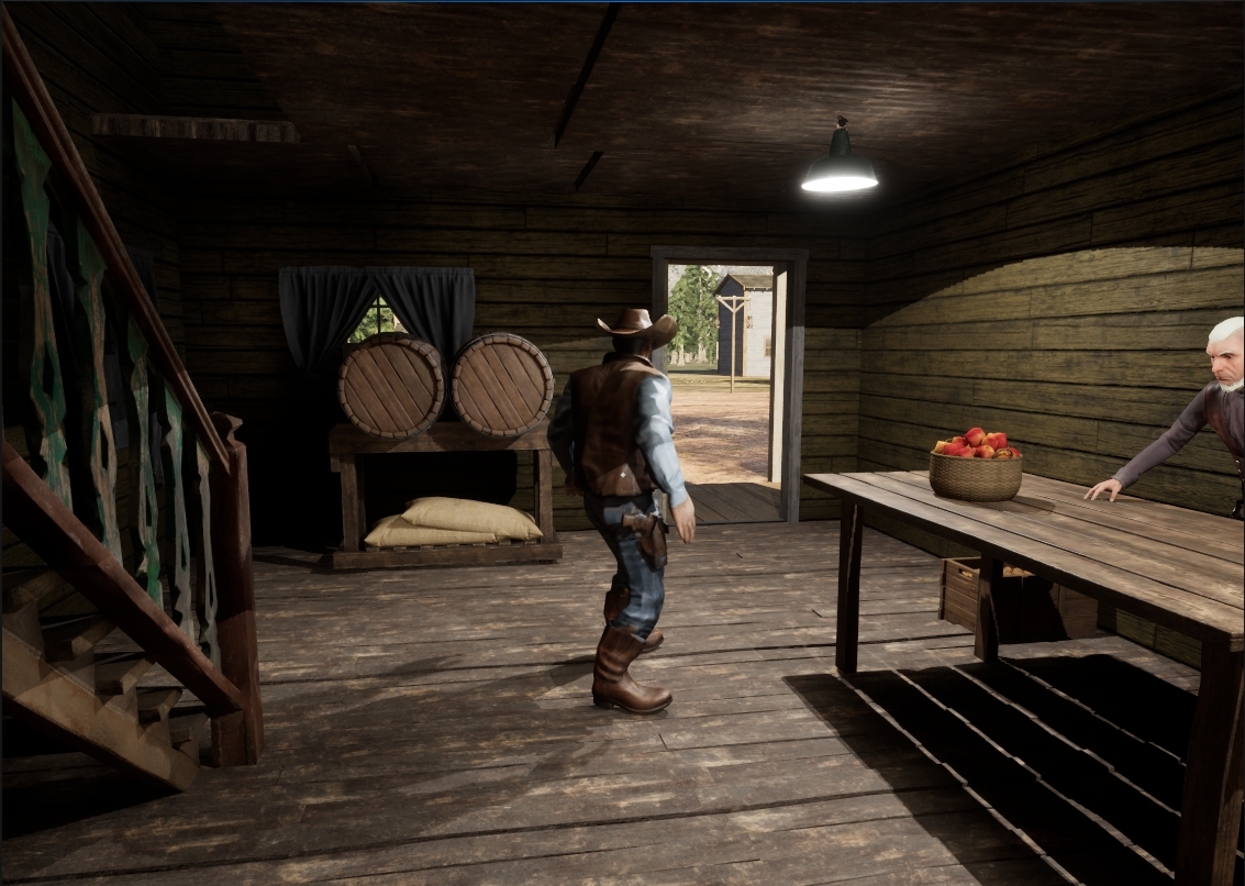 This project was developed over the course of two months as part of a final school project, built in Unreal Engine by a team of four. 1833 is a third-person, supernatural western shooter-adventure set in a cursed frontier town haunted by restless spirits and buried sins. Players fight through handcrafted encounters against undead residents, ruthless outlaws, and other twisted remnants of the Old West while uncovering the truth behind the entity that doomed the land. Blending intense gunplay with atmospheric exploration and narrative-driven quests, 1833 delivers a haunting, cinematic experience steeped in western grit and supernatural mystery. I was responsible for all aspects of the player, including skeletal rigging, animation integration, and combat scripting. As well as the interactable system and inventory. I also helped design and implement several of the game’s core encounters, working closely with our level designer to balance gameplay pacing and narrative flow. Other members of the team handled areas including environment art, narrative scripting, AI, Playable Quests, UI/Menus, and technical optimization.